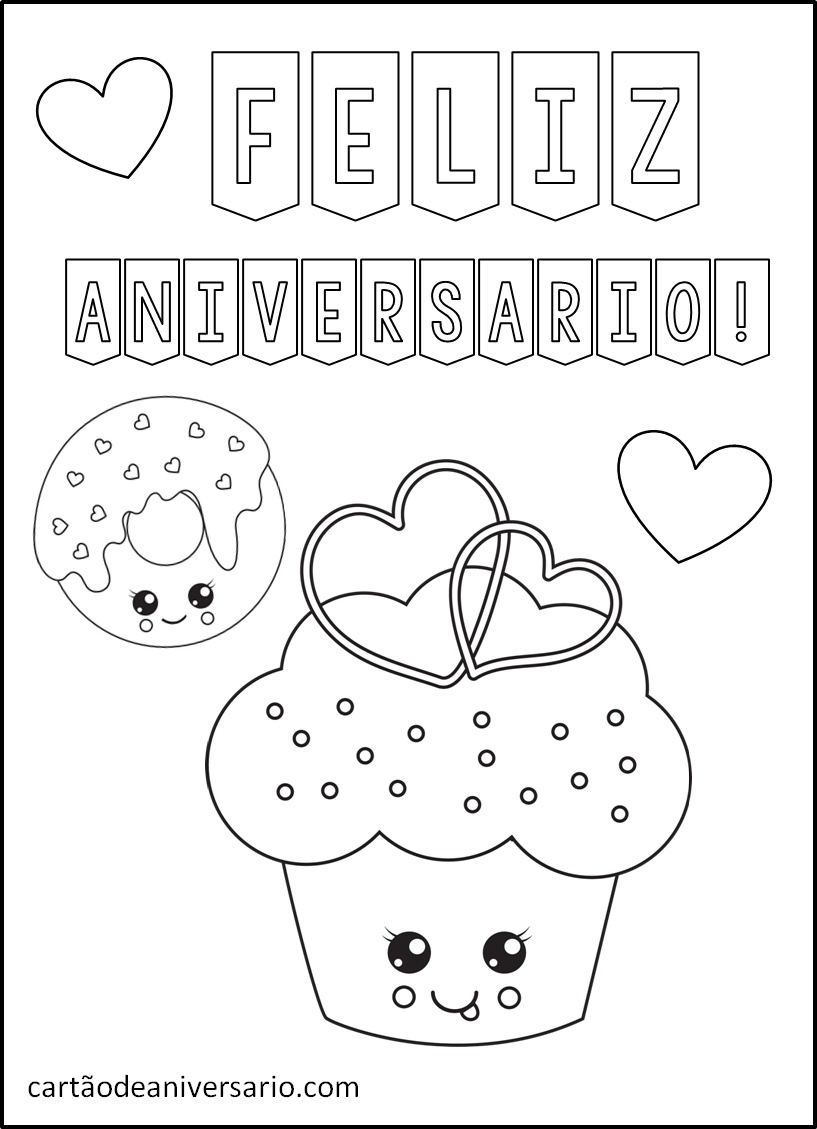 Lindos cartões virtuais para pintar e comemorar um aniversário, criativos, originais e variados totalmente gratuitos. Enviar lindos textos de aniversário é uma excelente ideia para expressar nossos desejos por aquela pessoa especial. Escolha a sua imagem para colorir de feliz aniversário favorita. Aproveite esta oportunidade única para lhe dar algo que vem do coração. O Aniversário de é uma data especial e maravilhosa para compartilhar com a família. Imagens de parabéns originais para desenhar. Imprima os desenhos com a resolução mais alta.