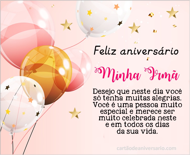 15 Feliz aniversário Minha Irmã, Desejo que neste dia você só tenha muitas alegrias. Você é uma pessoa muito especial e merece ser muito celebrada neste e em todos os dias da sua vida.