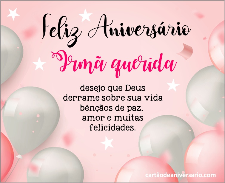 5 Feliz Aniversário Irmã querida, desejo que Deus derrame sobre sua vida bênçãos de paz, amor e muitas felicidades.