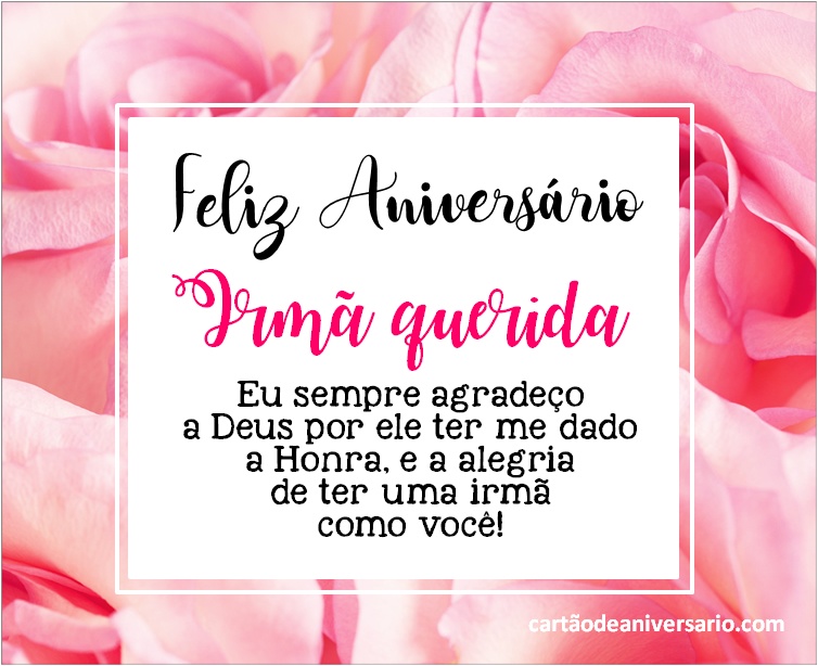 Lindos cartões virtuais para uma irmã em comemoração de aniversário, criativos, originais e variados totalmente gratuitos. Enviar lindos textos de aniversário é uma excelente ideia para expressar nossos desejos por aquela pessoa especial. Escolha sua frase favorita de feliz aniversário. Até agora nosso post de imagens e mensagens de feliz aniversário irmã, esperamos que tenham gostado e compartilhem em suas redes sociais e Whatsapp.