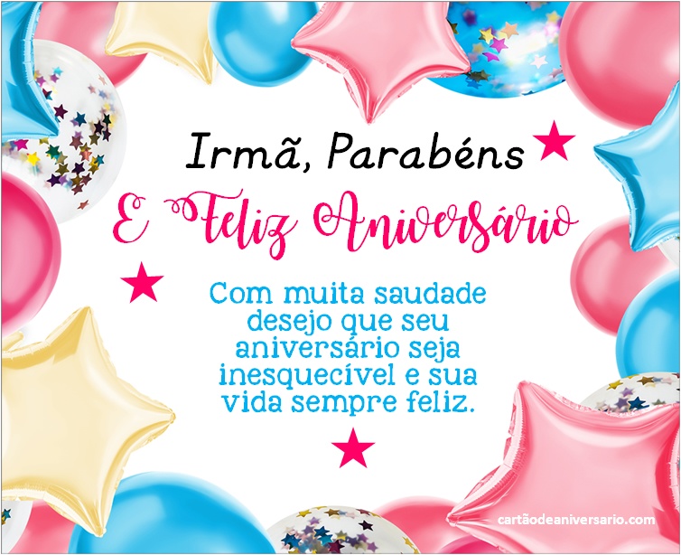 9 Irmã, Parabéns E Feliz Aniversário, Com muita saudade desejo que seu aniversário seja inesquecível e sua vida sempre feliz.