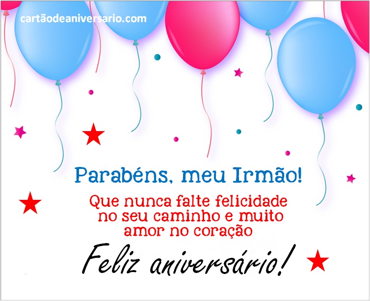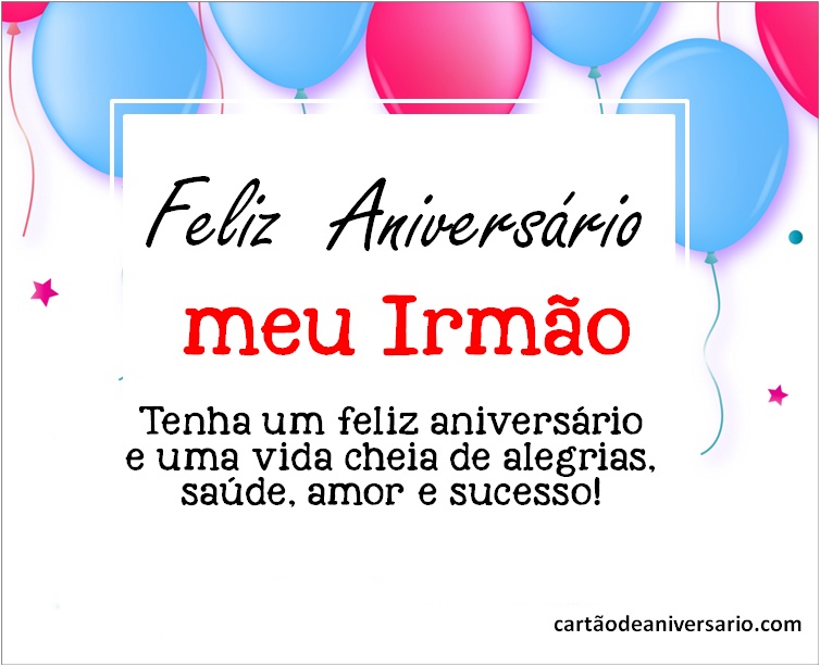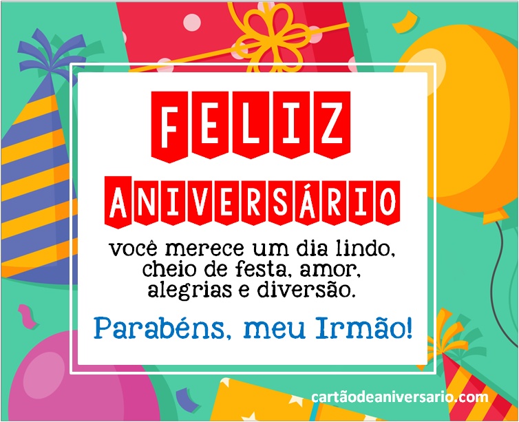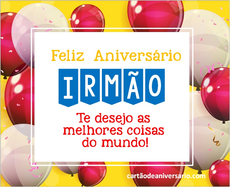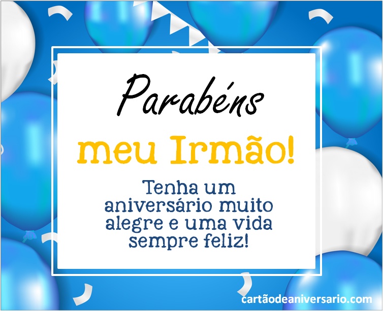 A melhor forma de dizer parabéns a um irmão é através dos nossos cartões de aniversário, não perca mais tempo e parabenize o seu querido irmão. Basta selecionar o cartão de aniversário que mais gosta e enviar online através de qualquer rede social e o melhor de tudo, são gratuitos. Ter um bom relacionamento com seu irmão é uma das melhores coisas que podem acontecer a uma pessoa. Você pode enviar-lhe um cartão de aniversário para o irmão com a intenção de deixá-lo saber que você o tem em seus pensamentos.