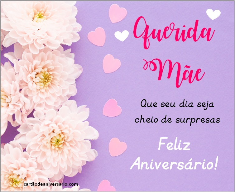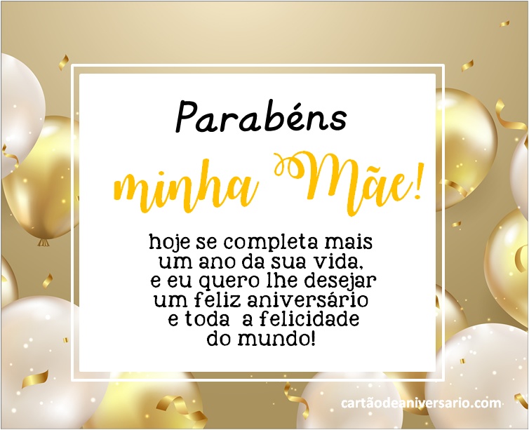 Saudações de aniversário para minha mãe com belos textos para compartilhar com toda a família. Deseje um feliz aniversário através de lindos cartões digitais. Escolha o que você mais gosta. Se você tem a sorte de ter sua mãe viva, então você tem que comemorar. um vínculo mãe-filho é verdadeiramente único e especial. Estes são os melhores votos de feliz aniversário para honrar a passagem de mais um ano, enquanto celebramos todos os bons momentos que ainda estão por vir. Para muitas pessoas, mais um ano de vida significa um novo começo cada pessoa desfruta desta ocasião especial de várias maneiras.