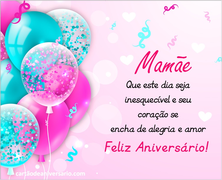 Envie sua saudação à sua mãe de forma original. Pesquise entre as nossas belas imagens de feliz aniversário com frases especiais. Os cartões postais de feliz aniversário para a mamãe podem baixar gratuitamente e são perfeitos para serem enviados por qualquer rede social (whatsapp, facebook, instagram). nosso blog é dedicado àquelas pessoas que têm dificuldade em escrever palavras calorosas para Feliz Aniversário. Onde quer que você se enquadre nesse espectro de inspiração, temos ideias para ajudá-lo a escrever uma mensagem mais significativa em seu cartão.