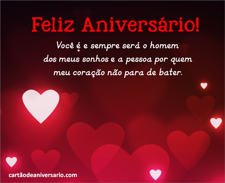Em nosso site temos os mais lindos desejos de aniversário para mimá-lo em seu dia e ao mesmo tempo, mostrar-lhe todo o amor que você sente por ele. A melhor forma de dizer parabéns ao seu namorado é através dos nossos postais de aniversário, não perca mais tempo e parabenize o seu querido amor. Basta selecionar o cartão de aniversário que mais gosta e enviar online através de qualquer rede social e o melhor de tudo, são gratuitos.