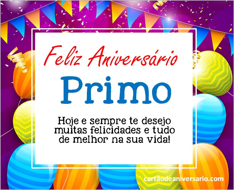 Como eu desejo um feliz aniversário para um primo? A melhor forma de dizer parabéns a um Primo é através dos nossos cartões de aniversário, não perca mais tempo e parabenize o seu querido Primo. Basta selecionar o cartão de aniversário que mais gosta e enviar online através de qualquer rede social e o melhor de tudo, são gratuitos. Neste post, preparamos os mais lindos desejos de aniversário para seu primo que, sem dúvida, ele vai adorar.