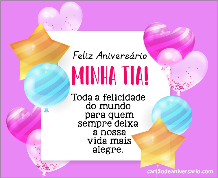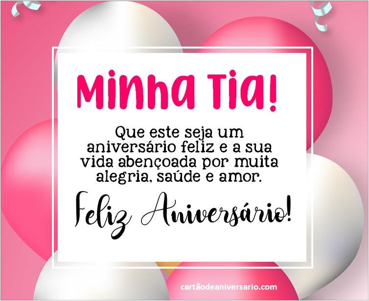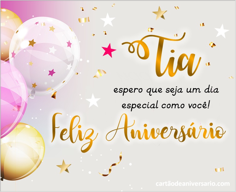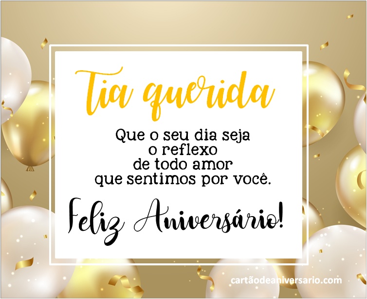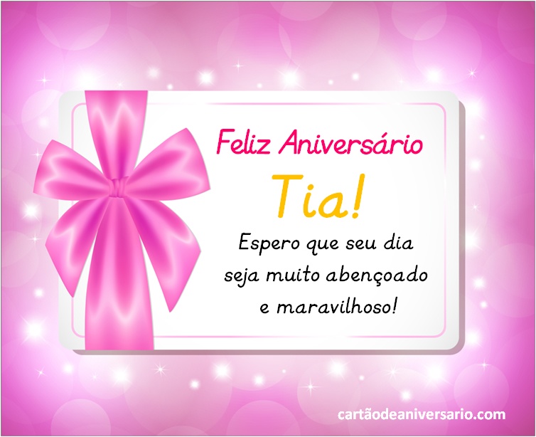 Família é tudo e que coisa mais linda do que expressar nosso carinho através de um cartão de aniversário para sua Tia no dia do aniversário dela. Escolha a imagem de aniversário que mais gosta com mensagens de carinho e amor. Os cumprimentos podem ser de diferentes maneiras, mas acima de tudo no calor familiar que é difícil de substituir. um cartão de aniversário para a tia pode ser o início de um de seus dias mais especiais.