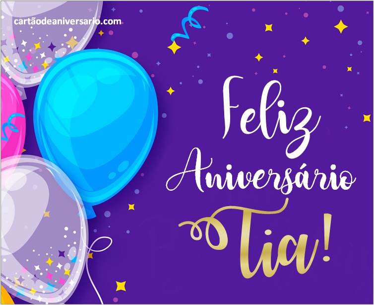 Envie sua saudação à sua Tia de forma original. Pesquise entre as nossas belas imagens de feliz aniversário com frases especiais. Os postais de feliz aniversário da sua Tia podem baixar gratuitamente e são perfeitos para serem enviados por qualquer rede social (whatsapp, facebook, instagram). Na coleção a seguir trazemos muitos cartões de aniversário para dedicar a uma tia em seu dia especial. As dedicatórias a seguir são perfeitas para dizer Feliz Aniversário Tia de uma forma única.