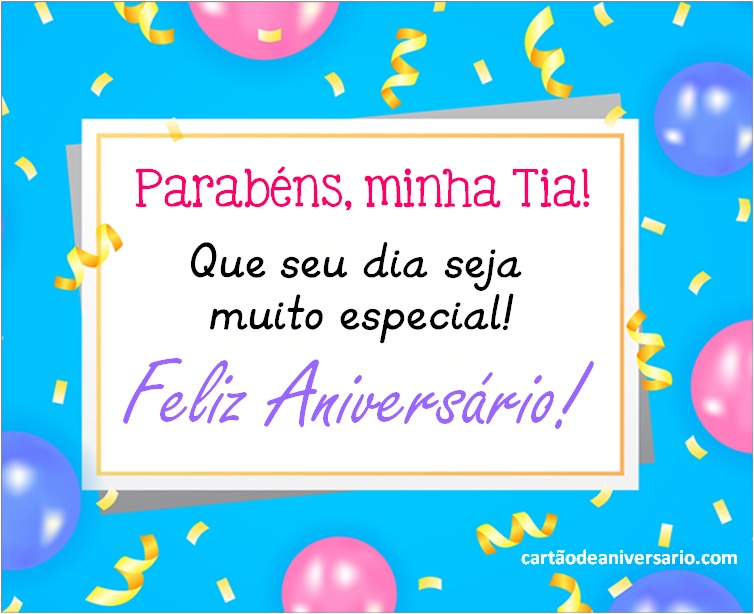 4 Parabéns, minha Tia! Que seu dia seja muito especial! Feliz Aniversário!